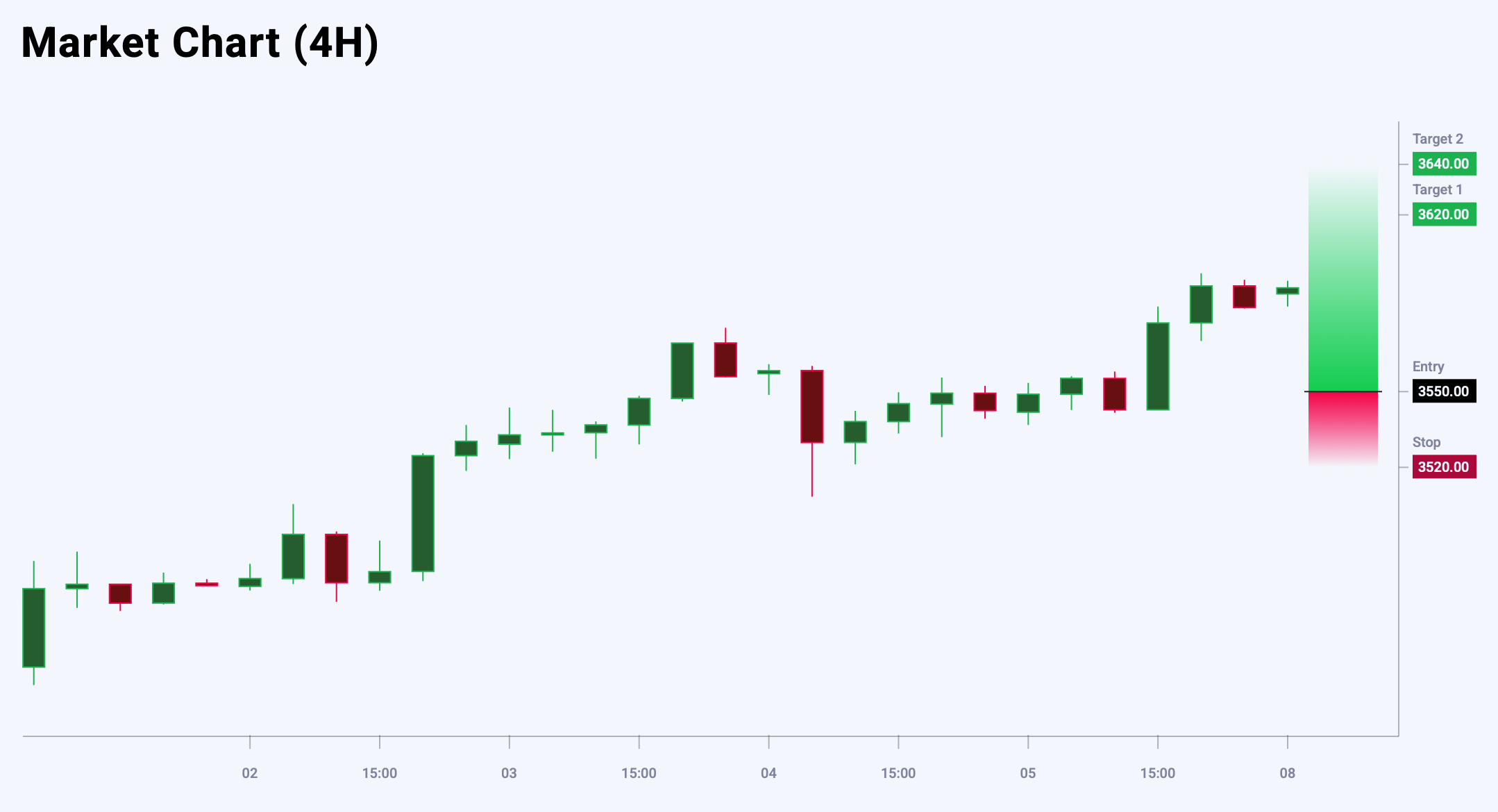 3,512 деңгейінен басталған XAUUSD бұқалық импульсі жаңа раллиге себеп болды, баға әлі де тарихи максимумдар маңында тұр. Азия сессиясында сатылым қысымы байқалды. Негізгі қолдау деңгейі 3,550 белгісінде, ал орта мерзімді тренд бұқалық күйде. Бүгінгі XAUUSD сауда идеясы күтілетін Buy Limit бұйрығын қоюды ұсынады.