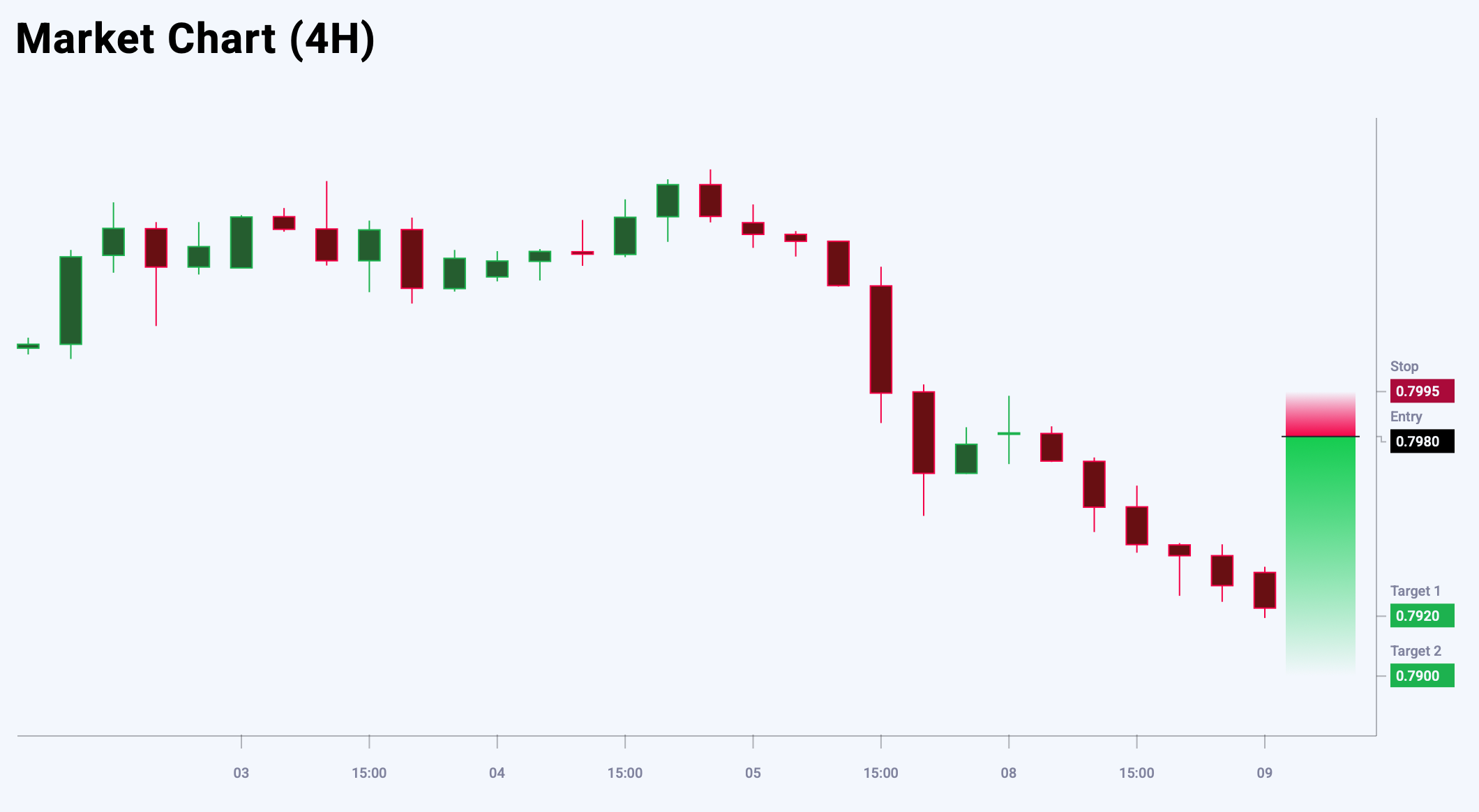 USDCHF жұбы бойынша негізгі тренд аюлы болып қалуда. Дегенмен, қысқа мерзімді RSI көтерілу үстінде, бұл бұқалық түзету аясында бағаның уақытша өсуін меңзейді. Соған қарамастан, басым стратегия – өсім кезінде сату. Негізгі қарсылық деңгейі 0.7980 белгісінде орналасқан. Бүгінгі USDCHF сауда идеясы Sell Limit күтілетін ордерді қоюды ұсынады.