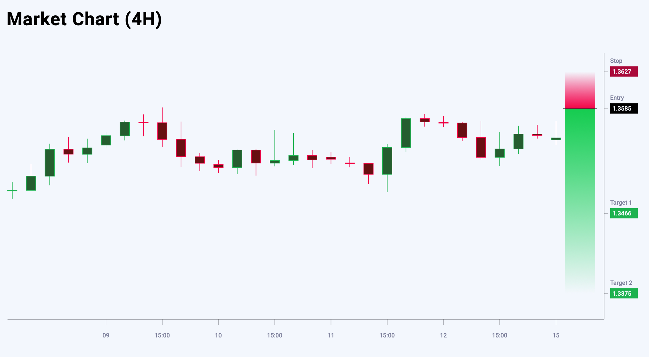 GBPUSD жұбы төбе қалыптастыруда, бұл қысқа мерзімді нарықтық көңіл-күйге теріс әсер етіп, төмендеудің ықтималдығын арттырады. Қолайлы тәуекел/пайда деңгейлерінде қысқа позициялар ашу ұсынылады. Негізгі стратегия – өсу кезінде сату, ал уақытша өсу әлеуеті 1.3585 деңгейіндегі кедергіге дейін болуы мүмкін. Бүгінгі GBPUSD сауда идеясы Sell Limit күтілетін ордерді қоюды ұсынады.