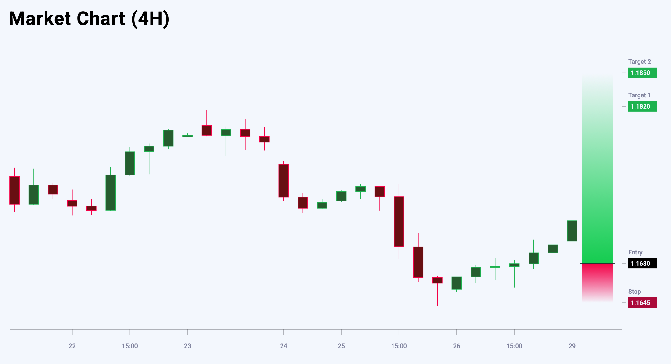 EURUSD жұбы негізгі бұқалық трендті сақтап отыр, күндік графикте терең аюлы түзетудің әлсіреу белгілері байқалады. 1.1680 қолдау деңгейіне дейінгі түзетулерден кейін сатып алу ұсынылады, ықтимал төмендеулер алдыңғы күннің минимумымен шектеледі. Бүгінгі EURUSD сауда идеясы Buy Limit күтілетін ордерді қоюды ұсынады.