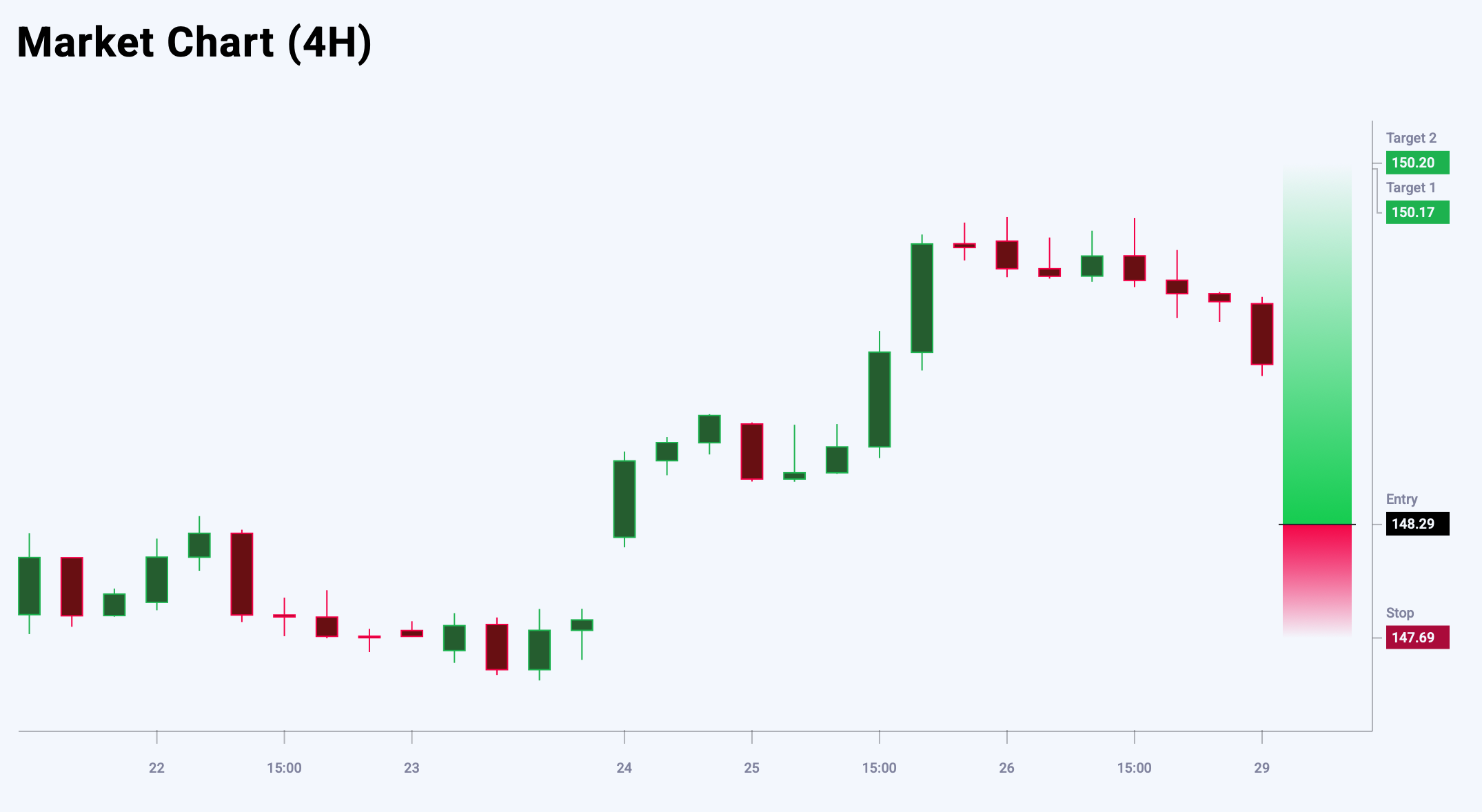 Бүгін таңертең USDJPY жұбы қор нарығындағы теріс динамика аясында төмендеді. Бұрынғы 148.38 кедергі деңгейі енді қолдау ретінде әрекет етеді, қосымша қолдау 148.29 деңгейінде орналасқан. Сауда стратегиясы түзетулерден кейін сатып алуды ұсынады. Бүгінгі USDJPY сауда идеясы Buy Limit күтілетін ордерді қоюды ұсынады.
