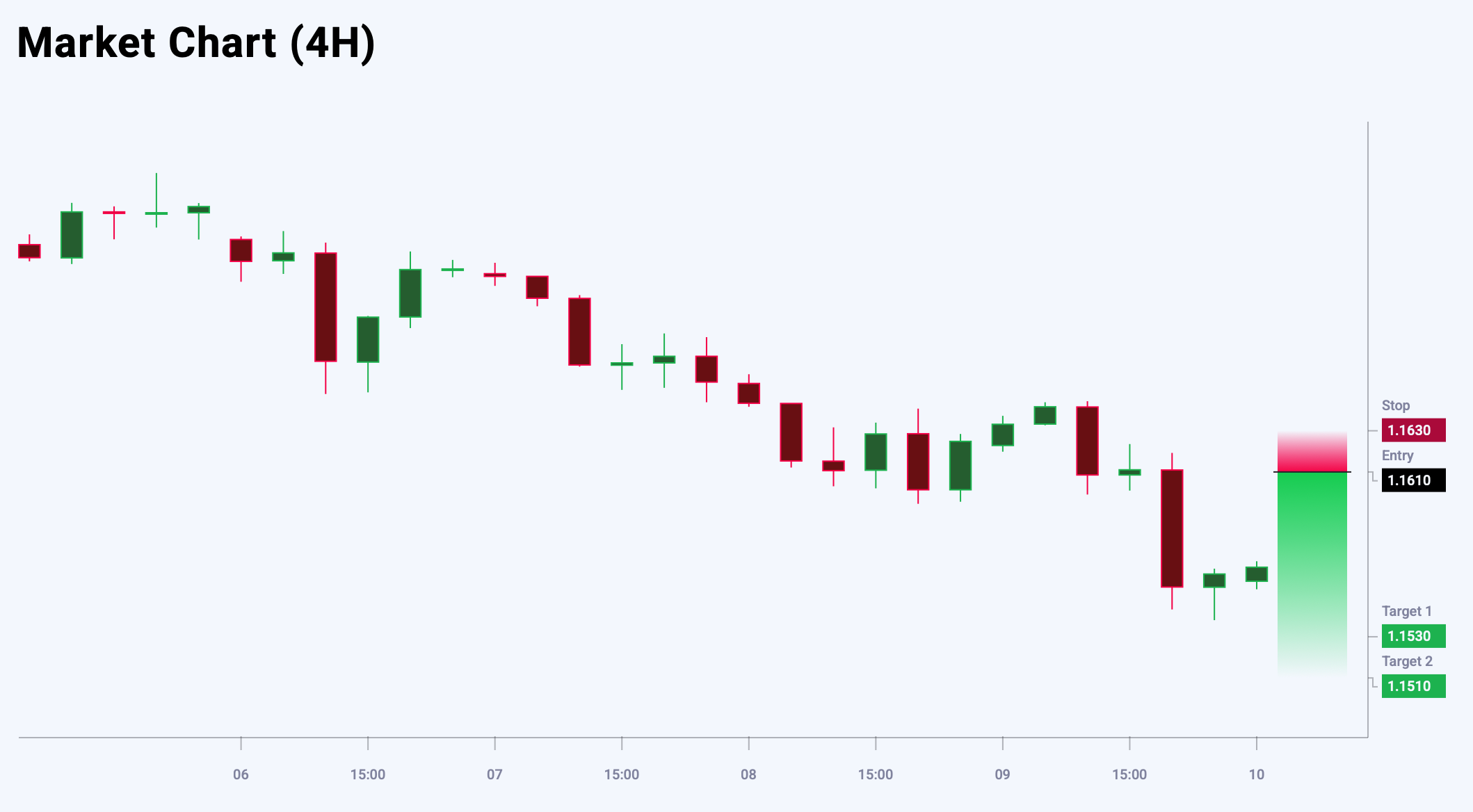 EURUSD жұбының орта мерзімді перспективасы аюлы болып қала береді. Қысқа мерзімде RSI индикаторының өсуі байқалады, бұл қалыптасып келе жатқан бұқалық дивергенция бағаның уақытша көтерілуіне қолдау көрсетуі мүмкін екенін білдіреді. Негізгі стратегия – баға өскен кезде сату, ал негізгі қарсылық деңгейі 1.1610 деңгейінде орналасқан. Бүгінгі EURUSD сауда идеясы Sell Limit күтілетін ордерді қоюды ұсынады.
