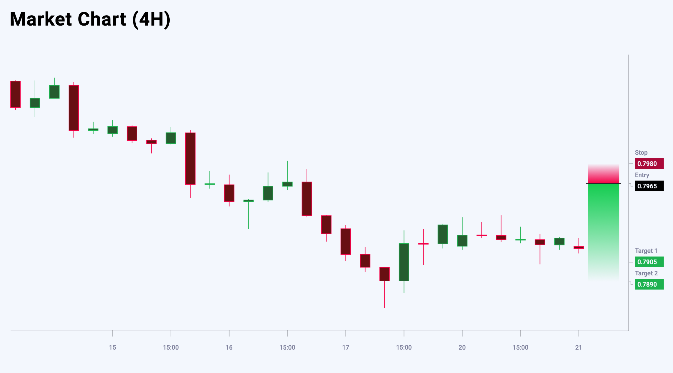 USDCHF жұбының негізгі тренді аюлы болып тұр. Баға түзету толқыны аясында уақытша өсім көрсетуі мүмкін. Негізгі стратегия – серпілу кезінде сату. Негізгі қарсылық деңгейі 0.7965 шамасында орналасқан. Бүгінгі USDCHF сауда идеясы Sell Limit күтілетін ордерді қоюды ұсынады.