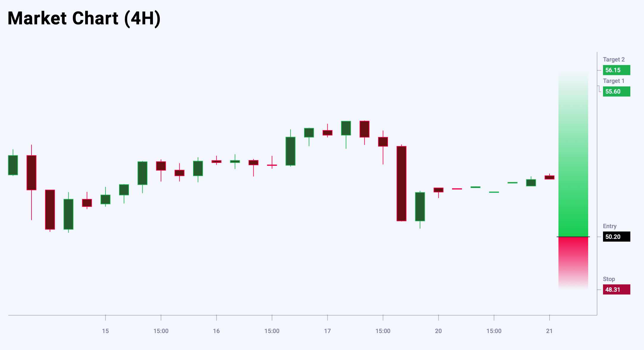 XAGUSD бойынша бұқалар бақылауды сақтап тұр, бірақ өсу серпінінің баяулауы ықтимал түзетуді көрсетеді. Орташа аюлы түзету күтілуде, дегенмен кез келген төмендеу шектеулі болуы ықтимал. Негізгі стратегия – қысқа түзетулер кезінде кіру және тығыз Stop-Loss пайдалану, әрі қарайғы өсуге үміттену. Негізгі қолдау деңгейі 50.20 шамасында орналасқан. Бүгінгі XAGUSD сауда идеясы Buy Limit күтілетін ордерді қоюды ұсынады.