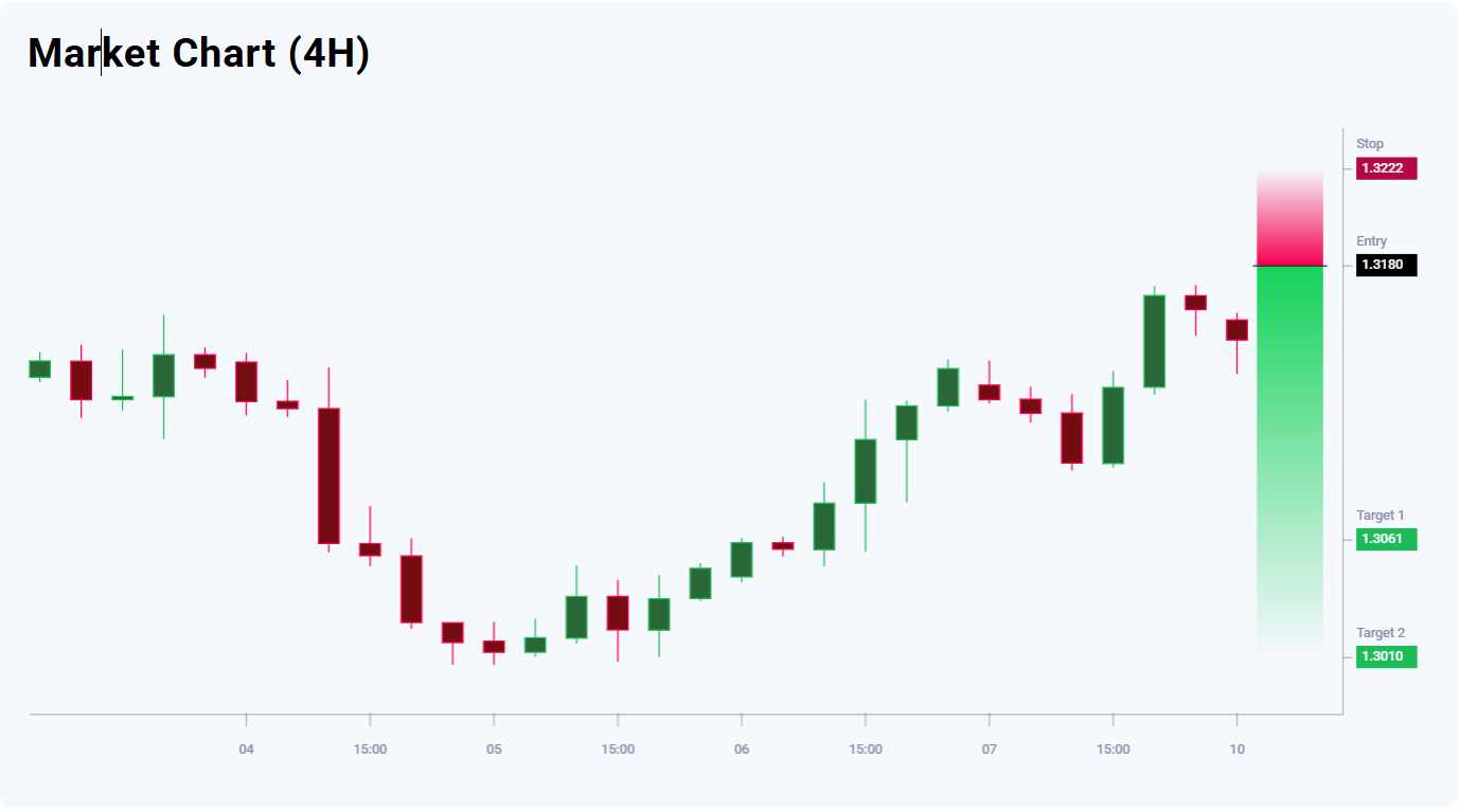 GBPUSD жұбы кері бұрылу шыңын қалыптастырып жатқан сияқты, ал негізгі тренд «аюлы» болып қалуда. Сондықтан ұсынылатын стратегия – қысқа Stop-Loss орната отырып, түзетуден кейін сату, бағаның төмендеу импульсінің жалғасуын күту. Негізгі қолдау деңгейі 1.3180 деңгейінде орналасқан. Бүгінгі GBPUSD сауда идеясы күтілетін Sell Limit ордерін орналастыруды ұсынады.