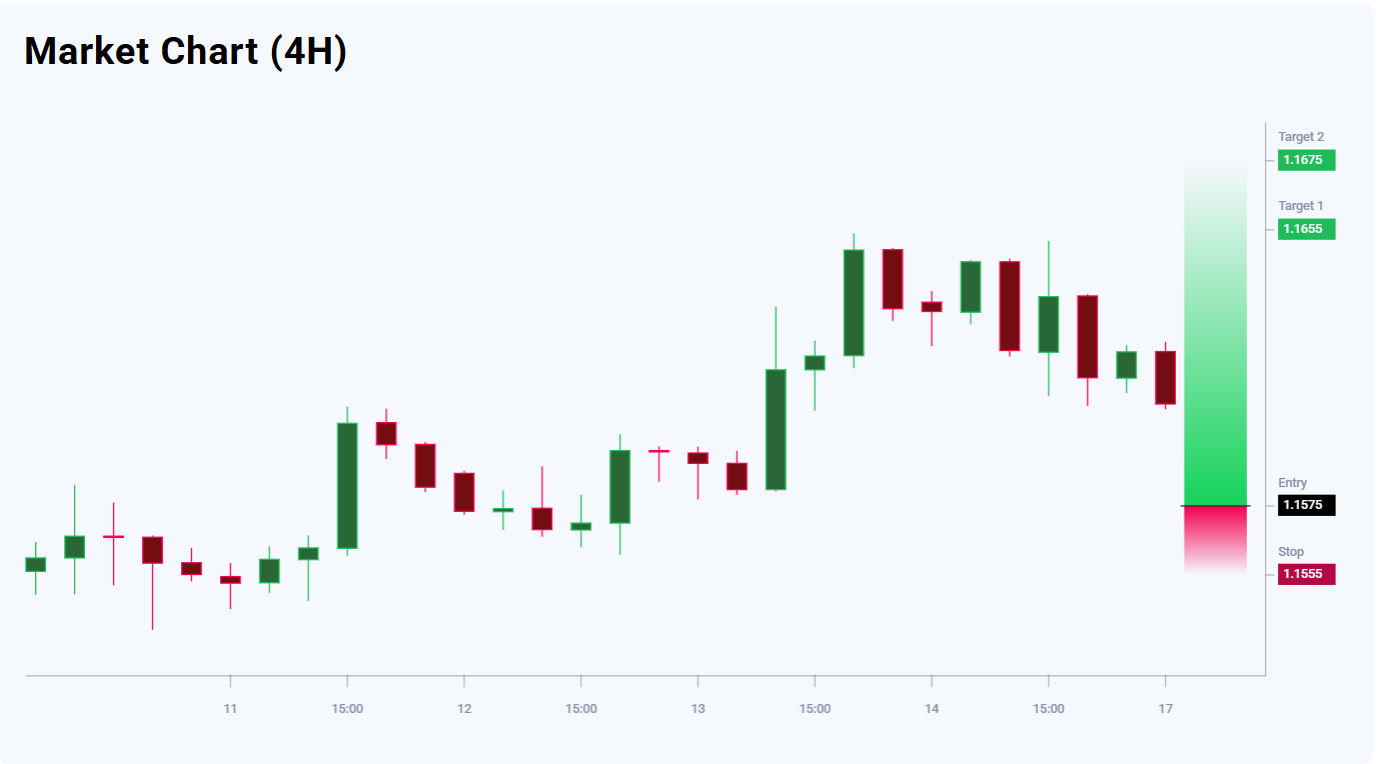 EURUSD жұбының негізгі тренді «бұқа» болып қалуда. Қысқа мерзімді RSI индикаторы төмен бағытта қозғалып, ықтимал түзетуді көрсетеді. Негізгі стратегия – баға төмендеген кезде сатып алу, себебі ағымдағы нарықтық деңгейлерден кіру тәуекел мен табыстылық қатынасы тұрғысынан тиімсіз. 1.1575 деңгейінде негізгі қолдау қалыптасты. Бүгінгі EURUSD сауда идеясы күтілетін Buy Limit ордерін орналастыруды ұсынады.