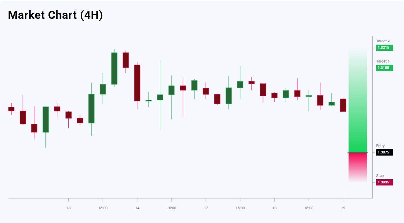 Нарықта «аюлардың» басымдығына қарамастан, GBPUSD жұбы бағытты түбегейлі өзгертіп, жоғары қарай қозғалыс бастауы мүмкін. Сондықтан ұсынылатын стратегия – қысқа Stop-Loss орната отырып, түзетуден кейін сатып алу, «бұқа» импульсінің жалғасуын күту. Негізгі қолдау деңгейі 1.3075 деңгейінде орналасқан. Бүгінгі GBPUSD сауда идеясы күтілетін Buy Limit ордерін орналастыруды ұсынады.