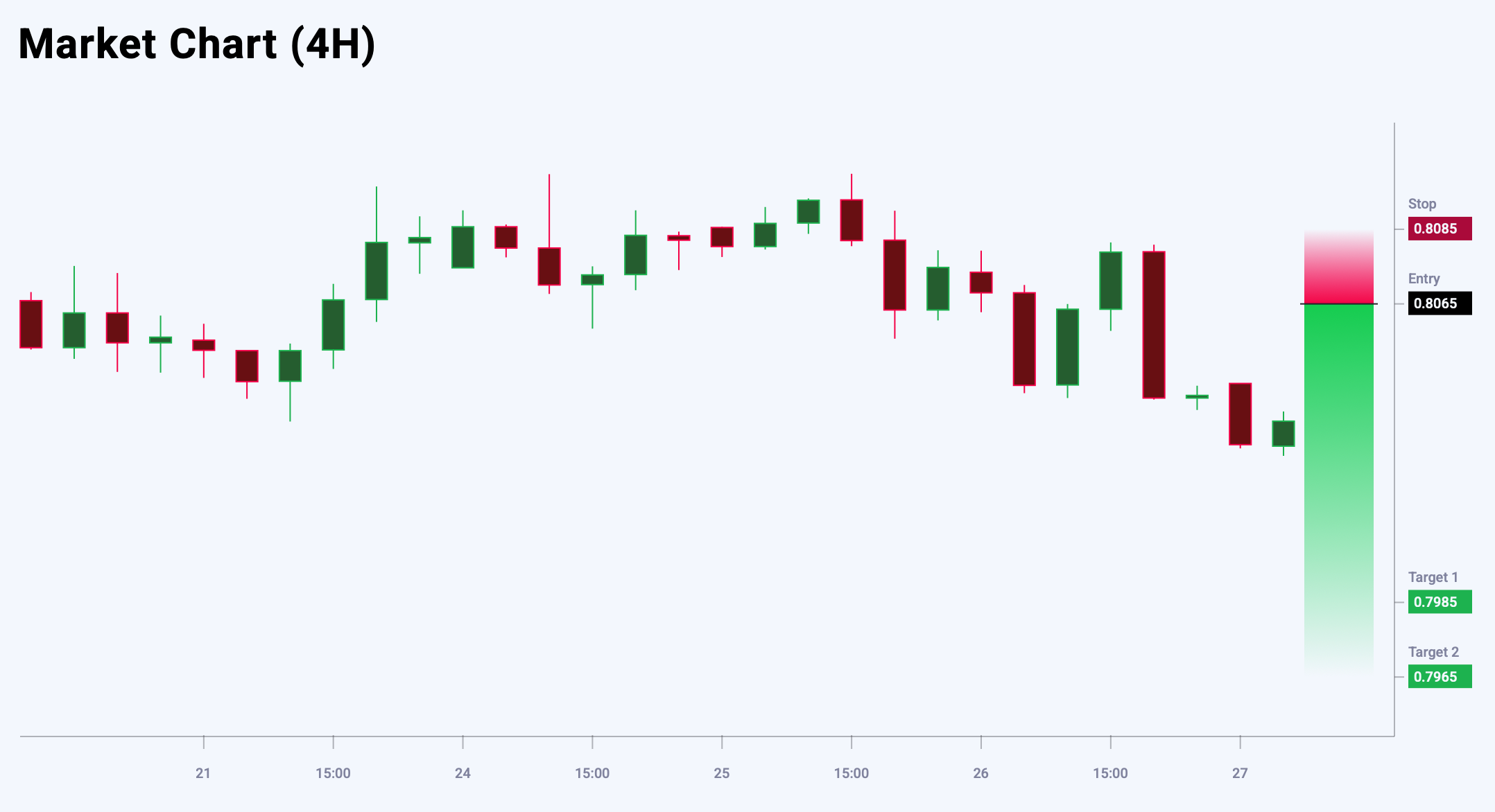 USDCHF валюталық жұбы «бұқалардың» бақылауында қалып отыр, бірақ өсу импульсінің баяулауы кері бұрылу ықтималдығын көрсетеді. Баға жергілікті шың қалыптастырып жатқанға ұқсайды, негізгі қарсылық деңгейі – 0.8065. Қысқа мерзімді өсу күтіледі, ал ұсынылатын стратегия – баға осы қарсылыққа жақындаған кезде сату. Бүгінгі USDCHF сауда идеясы күтілетін Sell Limit ордерін орналастыруды ұсынады.