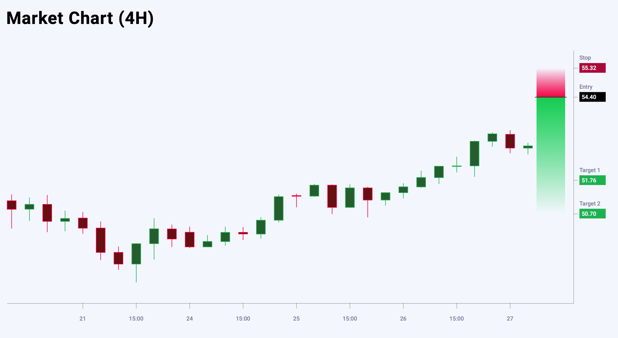 XAGUSD нарығын «бұқалар» бақылап тұрғанымен, өсу импульсінің бәсеңдеуі кері бұрылу ықтималдығын арттырады. Бұл қысқа мерзімді көңіл-күйге қысым түсіреді, сондықтан тәуекел мен табыстылық тұрғысынан тиімді сату мүмкіндіктерін іздеу ұсынылады. Негізгі қарсылық деңгейі – 54.40. Бүгінгі XAGUSD сауда идеясы күтілетін Sell Limit ордерін орналастыруды ұсынады.
