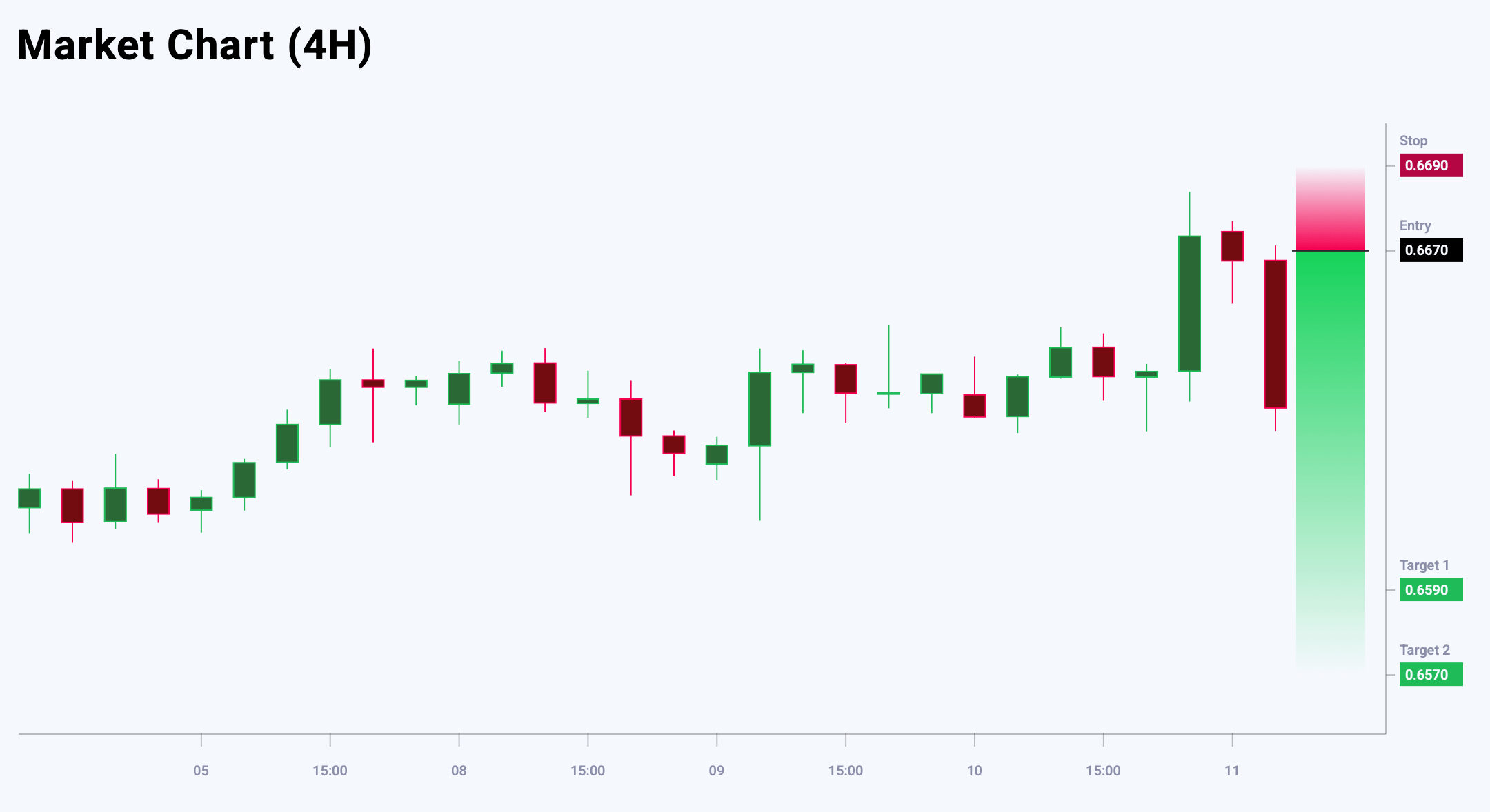 AUDUSD жұбында «бұқалар» бақылауды сақтап отыр, бірақ өсім импульсінің баяулауы түзетудің ықтималдығын арттырады. Қысқа мерзімді баға өсімі күтіледі, алайда ол кешегі максимуммен шектелуі мүмкін. Қалыптасып келе жатқан «аюлы» дивергенция өсімнің әрі қарай жалғасуын тежеп, негізгі қарсылық деңгейі 0.6670 маңында. Бүгінгі AUDUSD сауда идеясы Sell Limit ордерін орналастыруды ұсынады.