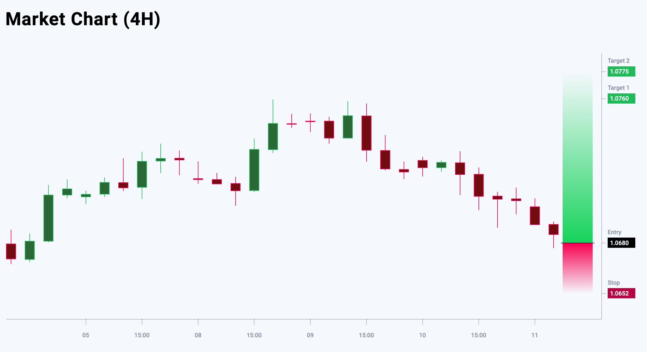 GBPCHF валюталық жұбының баға әрекеті жергілікті түбінің қалыптасуын меңзейді, бұл «бұқалық» көңіл-күйге оң әсер етеді және өсім импульсінің қайта жандану әлеуетін жасайды. Ең тиімді стратегия — қысқа мерзімді төмендеуді күтіп, түзету аяқталған соң сатып алу. Оптималды кіру деңгейі 1.0680 қолдау маңында. Бүгінгі GBPCHF сауда идеясы Buy Limit ордерін орналастыруды ұсынады.