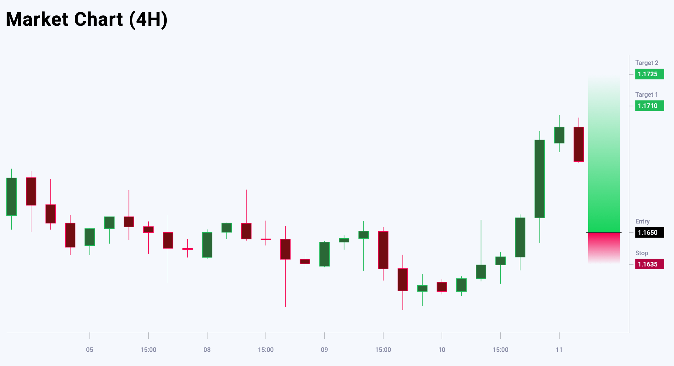 EURUSD валюталық жұбының негізгі тренді «бұқалық» болып қалуда, бірақ котировкалар «артық сатып алынған» аймақта тұр. Ең қисынды сценарий — баға түзетілген кезде сатып алу, өйткені негізгі маңызды қолдау 1.1650 деңгейінде орналасқан. Ағымдағы деңгейлерден ұзын позиция ашу тәуекел–табыстылық тұрғысынан тиімсіз, сондықтан тиімді кіру үшін «аюлы» түзетуді күткен жөн. Бүгінгі EURUSD сауда идеясы Buy Limit ордерін орналастыруды ұсынады.