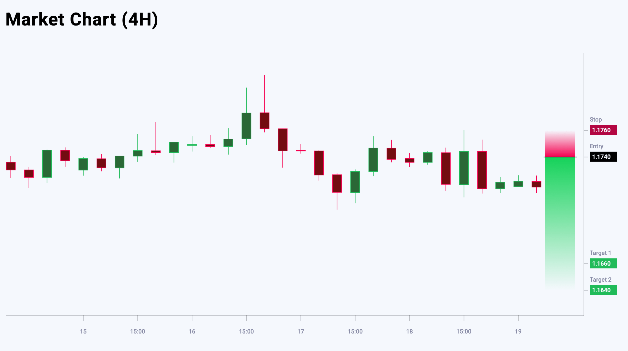 EURUSD валюталық жұбындағы баға динамикасы жергілікті төбенің қалыптасуын көрсетеді. Қысқа мерзімде котировкалардың өсуі күтіледі, сондықтан ағымдағы тәуекел мен табыс қатынасы осы деңгейлерде қысқа позиция ашуды тартымсыз етеді. Оңтайлы стратегия — баға өсуі кезінде түзетулерде сату. Негізгі қарсылық деңгейі 1.1740 аймағында орналасқан. Бүгінгі EURUSD сауда идеясы Sell Limit ордерін орналастыруды ұсынады.