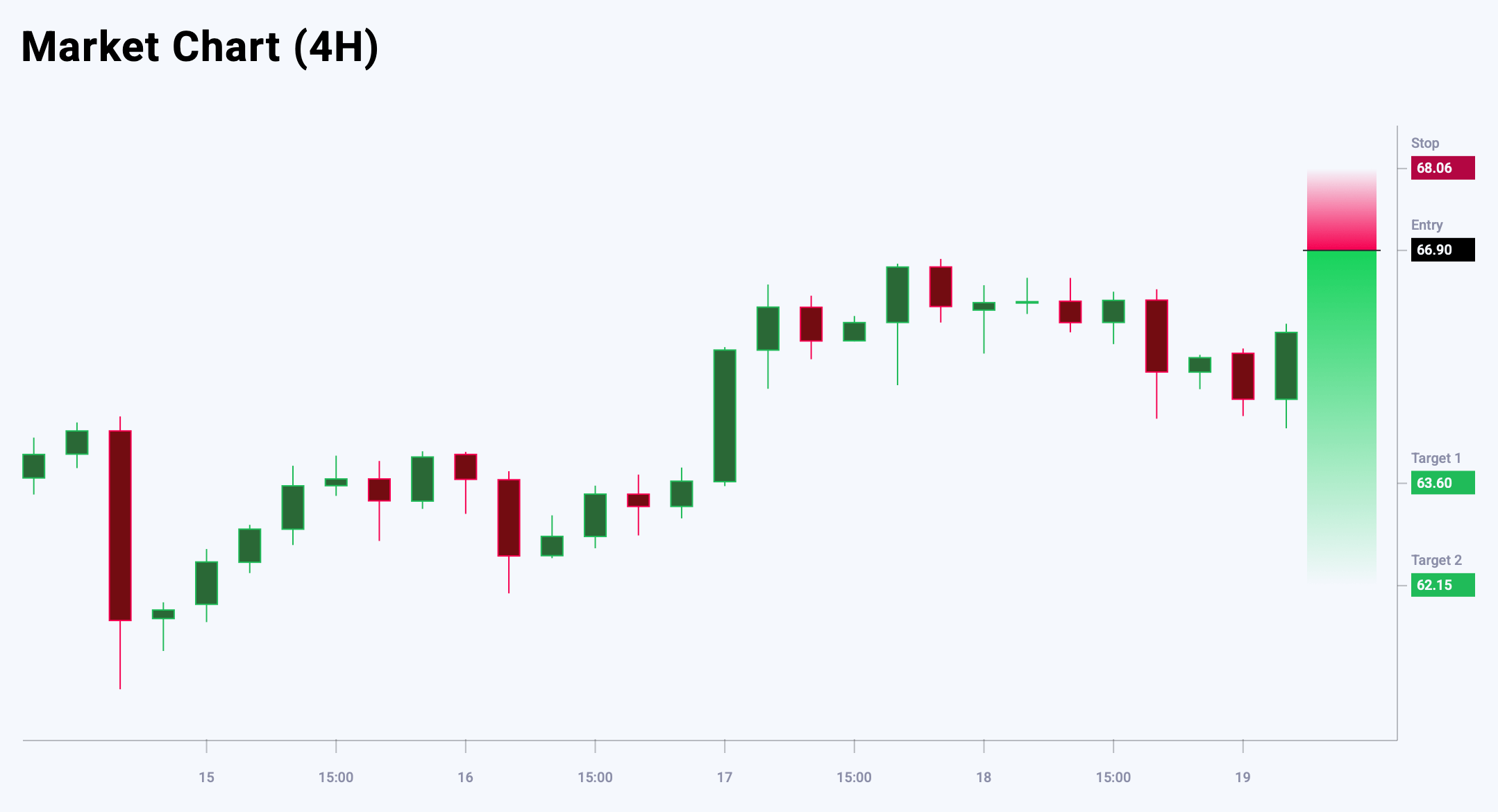 XAGUSD бағасының қозғалысында «бұқалар» бақылауды сақтап отырғанымен, өсу импульсінің баяулауы ықтимал бұрылысқа меңзейді. Бұл қысқа мерзімді көңіл-күй үшін теріс фон қалыптастырады және алдағы «аюлы» түзетуді күте отырып, қысқа позициялар ашуды орынды етеді. Артықшылықты стратегия — баға өскен кезде сату. Күтілетін төмендеу түзетуші сипатта болғанымен, ол тәуекел мен табыс қатынасы тұрғысынан тартымды мүмкіндік ұсынады. Негізгі қарсылық деңгейі 66.90 аймағында орналасқан. Бүгінгі XAGUSD сауда идеясы Sell Limit ордерін орналастыруды ұсынады.