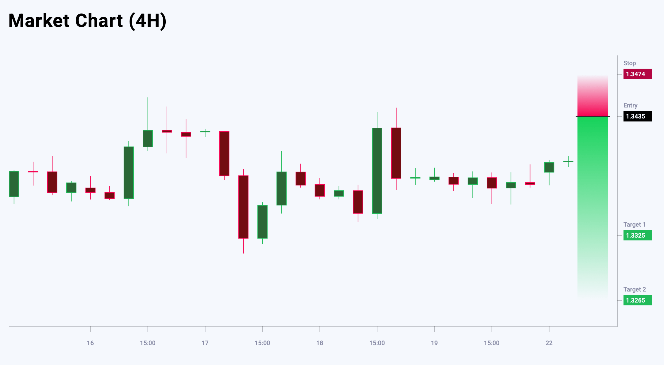 GBPUSD валюталық жұбында сатып алушылар бақылауды сақтағанымен, өсу импульсінің баяулауы қысқа мерзімді баға бұрылу ықтималдығының артқанын көрсетеді. Бұл жағдай жақын мерзімді нарықтық көңіл-күйді әлсіретіп, қысқа позицияларды қарастыруға жағдай жасайды. Күтілетін төмендеу түзетуші сипатта болғанына қарамастан, ағымдағы қозғалыс осы сауда сессиясы үшін тәуекел мен табыс қатынасы тұрғысынан тартымды болып отыр. GBPUSD бойынша негізгі қарсылық 1.3435 деңгейі маңында орналасқан. Бүгінгі GBPUSD сауда идеясы Buy Limit күту ордерін орналастыруды ұсынады.