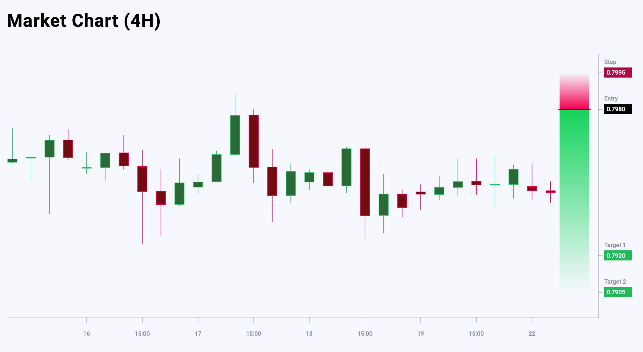 USDCHF валюталық жұбы бойынша орта мерзімді тренд «аюлы» күйінде қалып отыр; алайда «бұқалы» дивергенцияның қалыптасуы түзетуші қалпына келуді іске қосып, бағаның өсуін қолдауы мүмкін. Негізгі қарсылық 0.7980 деңгейі маңында орналасқан. Ағымдағы деңгейлерден қысқа позиция ашу тәуекел мен табыс қатынасы тұрғысынан тартымсыз көрінеді, сондықтан артықшылықты стратегия — түзетулер кезінде сату. Бүгінгі USDCHF сауда идеясы Sell Limit күту ордерін орналастыруды ұсынады.