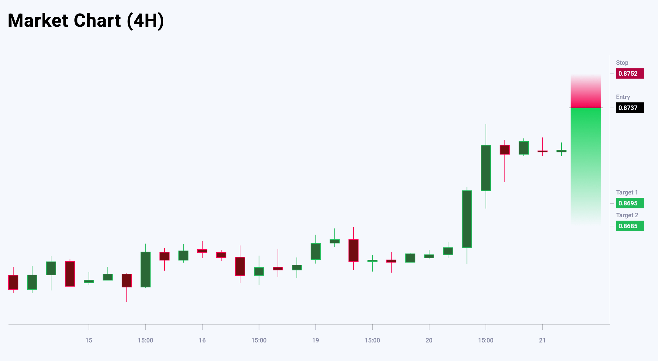 EURGBP бойынша күндік сигналдар аюлы бағытты көрсетеді. Бастапқы оптимизм қысқа мерзімді өсімге әкелуі мүмкін, алайда жоғары қозғалысты жалғастыру әрекеттері сәтсіз аяқталып, бағаның қайта төмендеуіне ұласуы ықтимал. Негізгі қарсылық деңгейі 0.8740, ал 0.8746 белгісі нарық үшін маңызды болып қала береді. Бағаның уақытша өсуі күтіледі. Бүгінгі EURGBP сауда идеясы Sell Limit күту ордерін орналастыруды ұсынады.