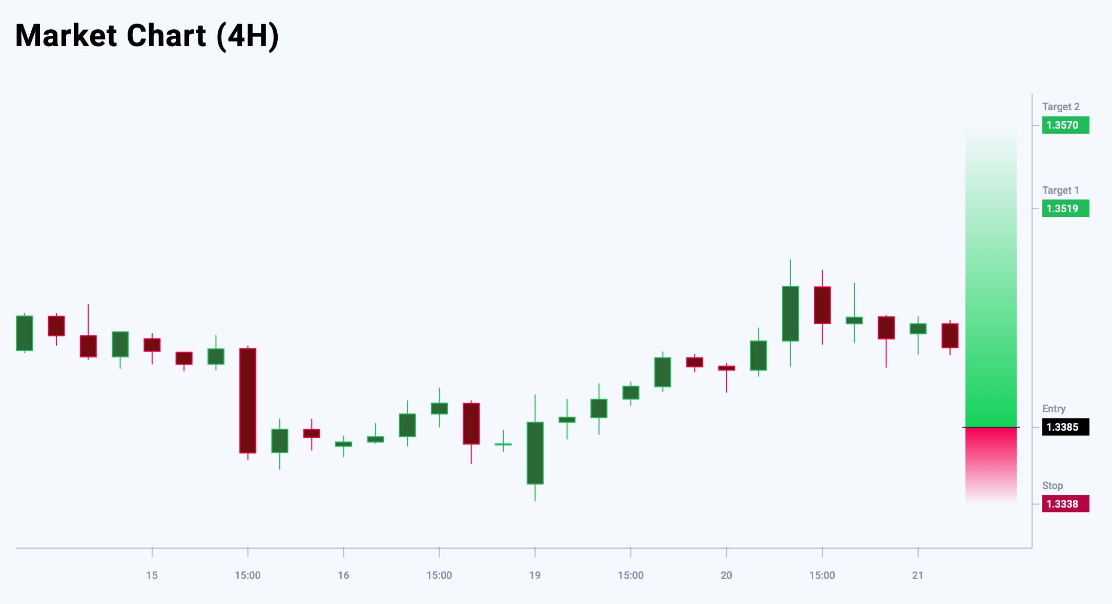 GBPUSD жұбында қарсылық 1.3492 деңгейінде сақталып, сатушылардың қысымы бағаның төмен қарай кері шегінуіне әкелді. Осы жағдайда төмендеу жалғасуы мүмкін, бұл ұзақ позицияларға кіру үшін қолайлы мүмкіндік беруі ықтимал. 1.3385 негізгі қолдау деңгейі маңында тығыз stop-loss қолдана отырып сатып алуды қарастыру ұсынылады. Бүгінгі GBPUSD сауда идеясы Buy Limit күту ордерін орналастыруды ұсынады.