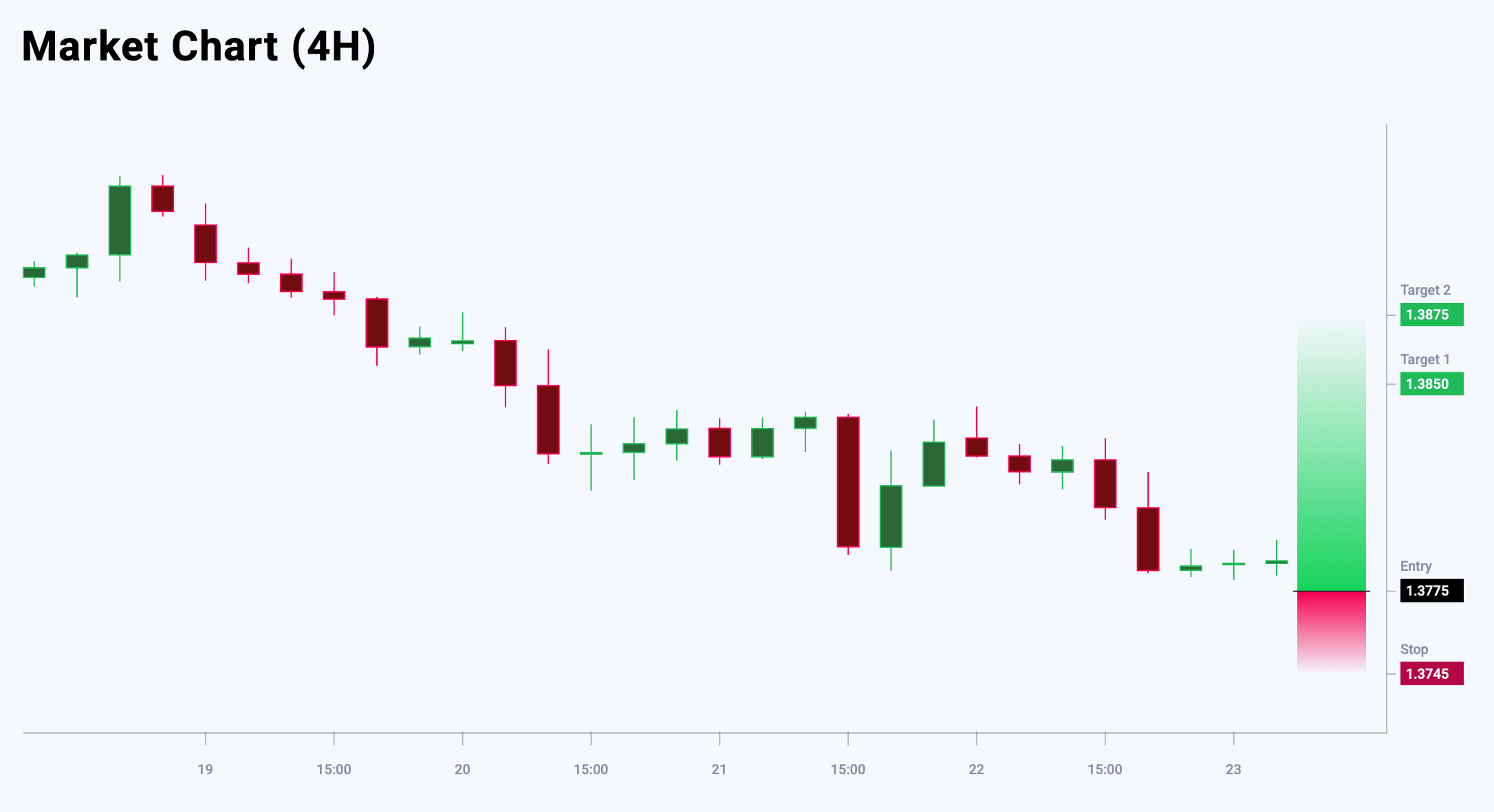 Ағымдағы деңгейлерде сатып алу тәуекел мен табыс қатынасы тұрғысынан қолайсыз. 1.3800 деңгейінен жоғары бұзылу бұқалы импульстің жалғасуын растап, 1.3875 деңгейіндегі мақсатқа жол ашады. Бүгінгі USDCAD сауда идеясы Buy Limit күту ордерін орналастыруды ұсынады.