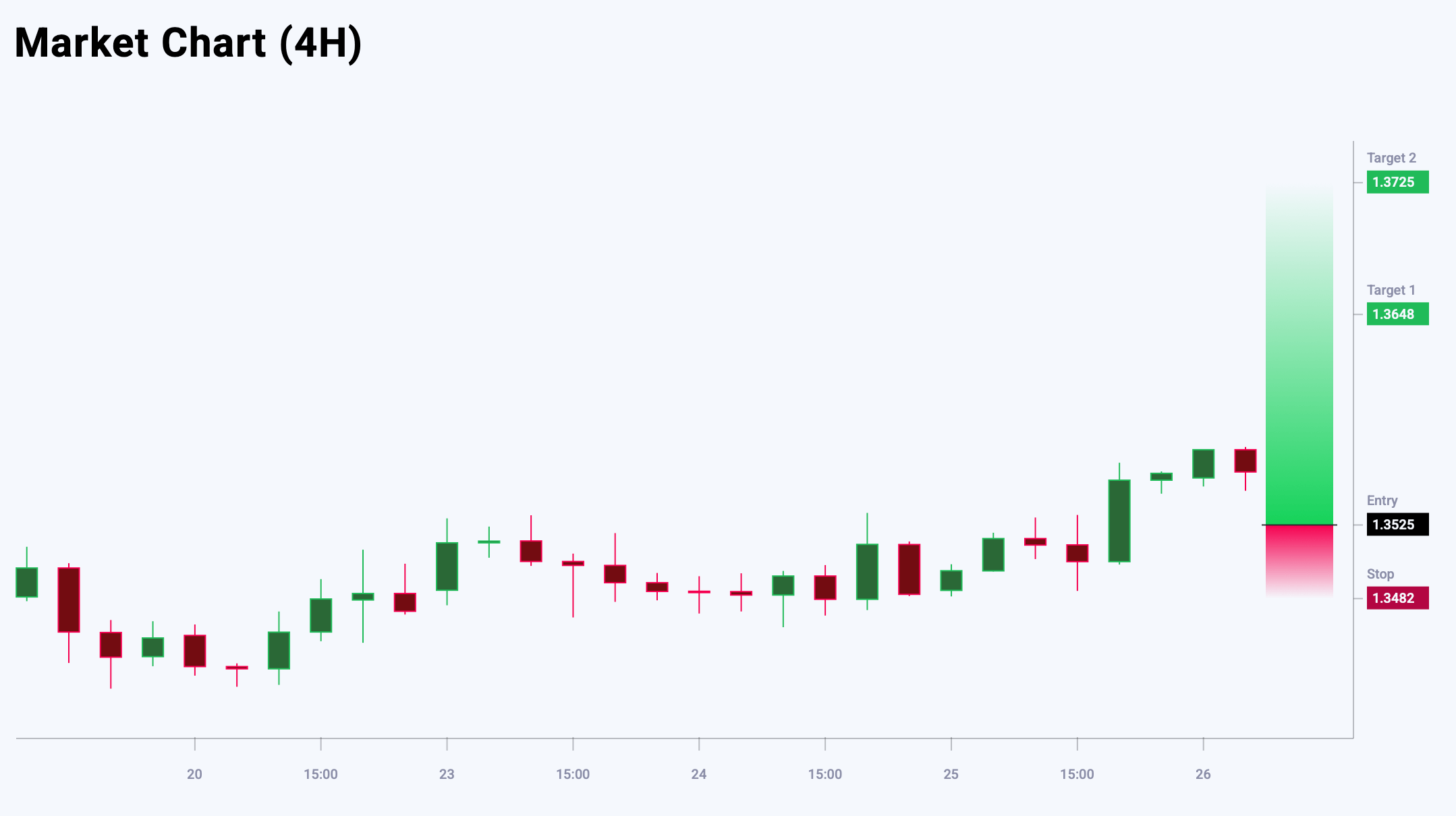 GBPUSD жұбы жергілікті максимум қалыптастырып жатқан сияқты, бұл қысқа мерзімді аюлы коррекцияның мүмкін екенін көрсетеді. Бағаның орташа төмендеуі күтіледі, алайда Ichimoku Cloud тарапынан қолдау төмендеу әлеуетін шектейді. Басым өсу трендін ескере отырып, оңтайлы стратегия – кері шегіністер кезінде сатып алу. Негізгі қолдау деңгейі 1.3525 аймағында орналасқан, мұнда нарық өсуін қайта жалғастыру үшін қосымша тірек ала алады. Бүгінгі GBPUSD сауда идеясы кейінге қалдырылған Buy Limit ордерін орналастыруды көздейді.