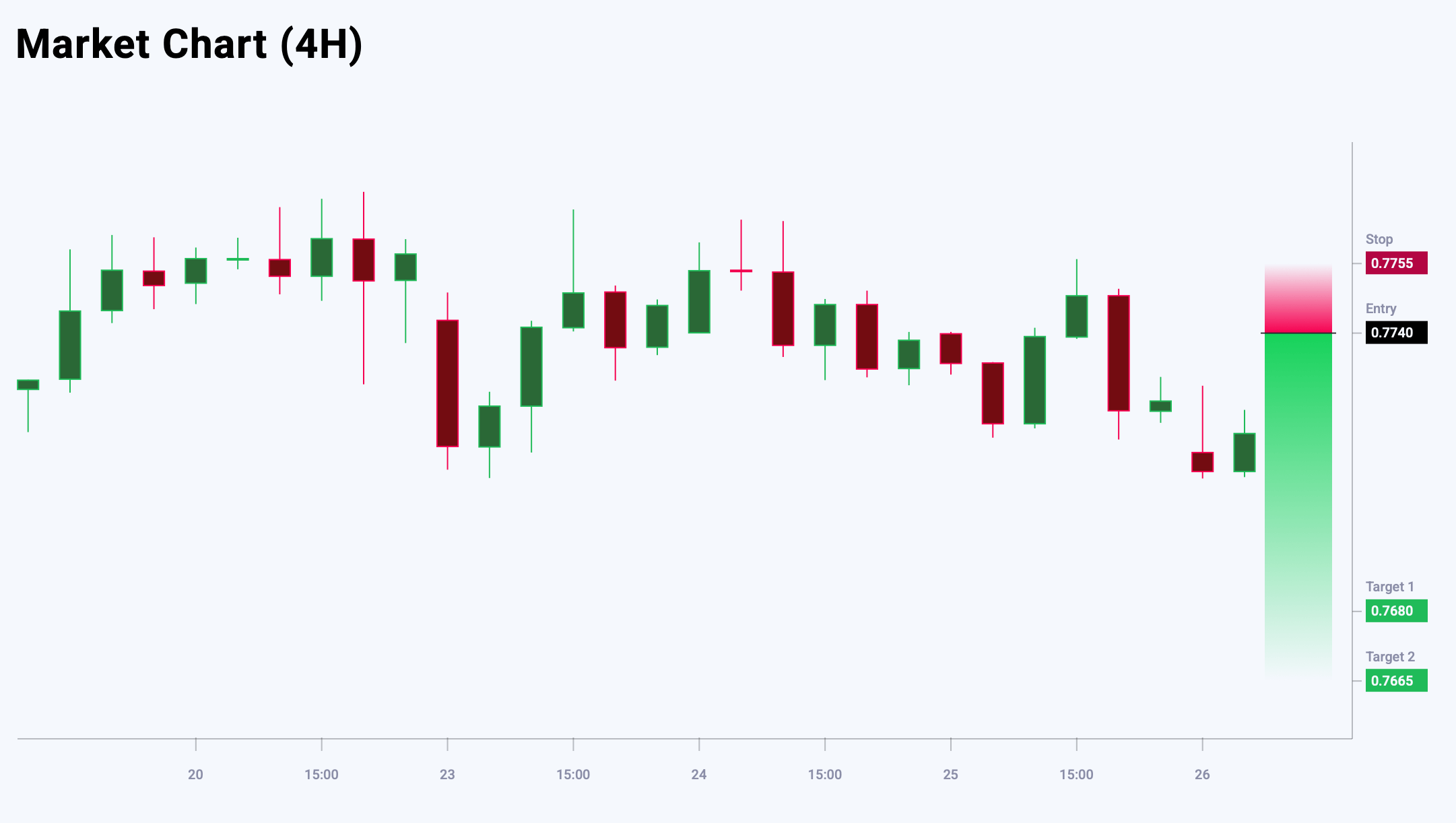 USDCHF жұбы жергілікті максимум қалыптастырып жатқан сияқты, алайда ағымдағы деңгейлер қысқа позициялар ашу үшін тартымды тәуекел/табыстылық арақатынасын ұсынбайды. Ең жақын 0.7740 қарсылық деңгейіне қарай уақытша өсу күтіледі. Оңтайлы стратегия – негізгі қарсылық деңгейін кіру нүктесі ретінде пайдаланып, кері шегіністер кезінде сату. Бүгінгі USDCHF сауда идеясы кейінге қалдырылған Sell Limit ордерін орналастыруды көздейді.