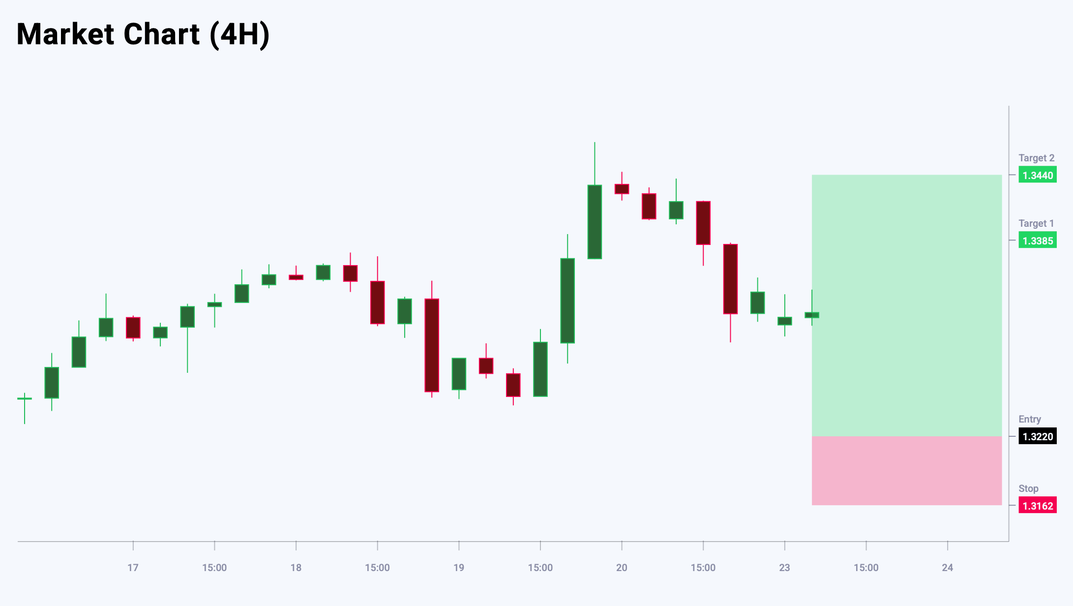 GBPUSD валюта жұбы орташа аюлы бағытты сақтауда. Сатушылар әлі де нарықты бақылауда ұстап тұрғанымен, қысымның әлсіреуі түзетусіз агрессивті төмендеудің жалғасу ықтималдығын азайтады. Ағымдағы жағдай түзетулер кезінде сатып алу үшін қолайлы болып көрінеді. Негізгі сценарий – тәуекел/табыстылық қатынасы тартымды болған жағдайда төмендеулерде ұзын позициялар іздеу. Күтілетін өсім түзету сипатында болады, бірақ ол күн ішіндегі сауда мүмкіндіктерін ұсына алады. Негізгі қолдау аймағы 1.3220 деңгейінде орналасқан, мұнда бұқалардың қызығушылығы артып, бағаның айқын реакциясы байқалуы мүмкін. Бүгінгі GBPUSD сауда идеясы кейінге қалдырылған Buy Limit ордерін орналастыруды көздейді.
