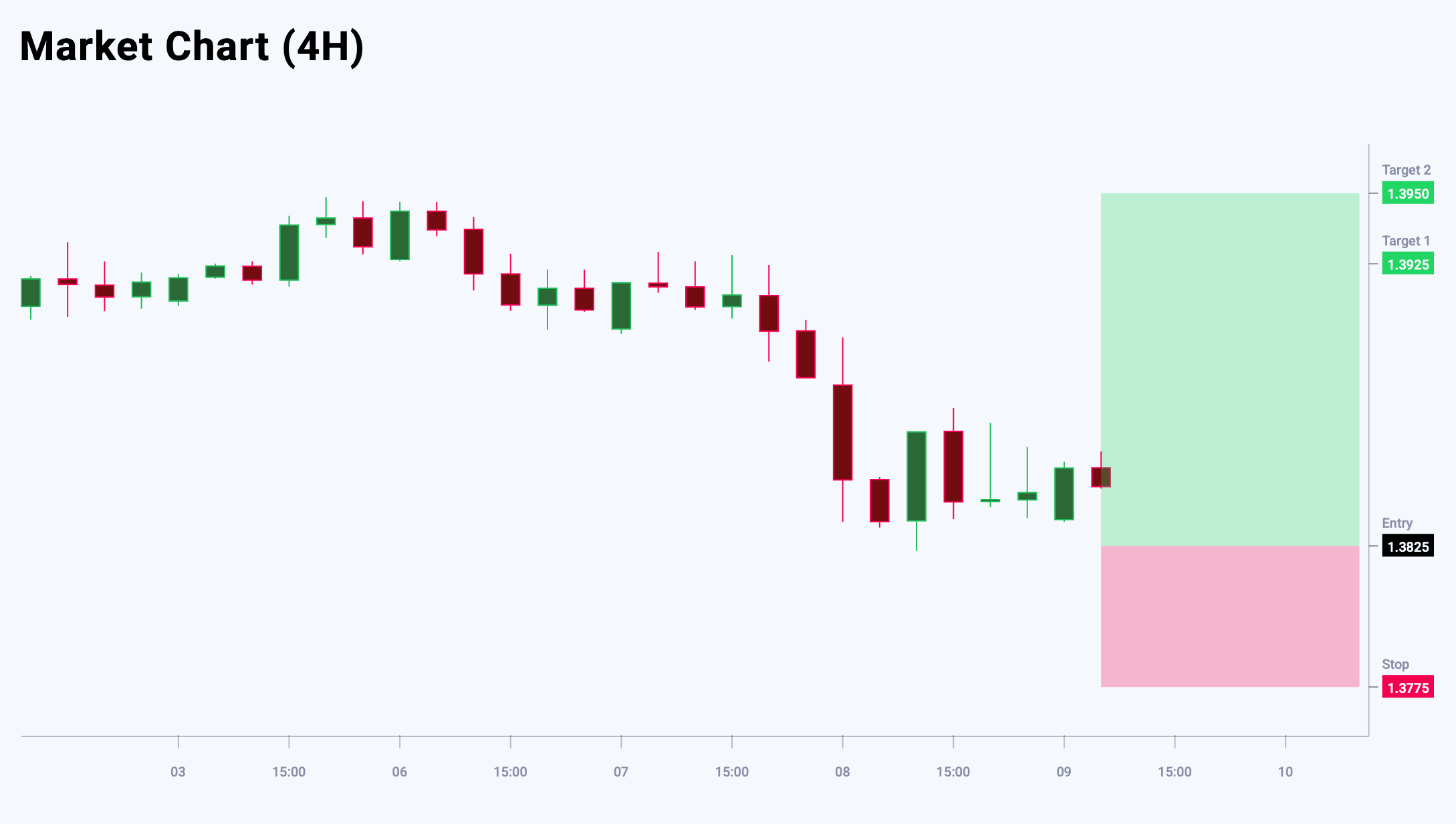 USDCAD бағасының ағымдағы қозғалысы түзету жалғасып жатқанына қарамастан, өсім трендінің аяқталғанын көрсететін нақты сигналдар бермейді. Сатып алушылар нарықты бақылауда ұстап, жалпы бағытты бычий күйде сақтап отыр. Сонымен қатар, тереңірек түзету ықтималдығы сақталады. Ағымдағы деңгейлер тәуекел/табыстылық арақатынасы тұрғысынан тартымсыз көрінеді, сондықтан дәл қазір ұзын позициялар ашу ұсынылмайды. 1.3875 деңгейінен жоғары тұрақты өсу бычий импульстің күшеюін растап, келесі мақсат ретінде 1.3950 деңгейін ашады. Бүгінгі USDCAD сауда идеясы кейінге қалдырылған Buy Limit ордерін орналастыруды көздейді.