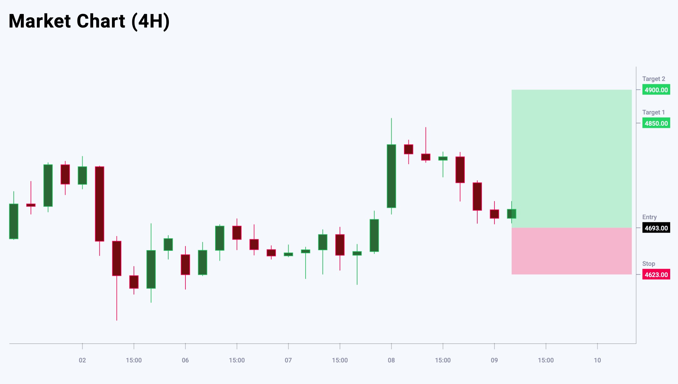 XAUUSD бойынша негізгі қарсылық деңгейі 4,850 USD аймағында орналасқан, мұнда бұрын сатушылар белсенділік танытқан. Rising Wedge үлгісінің қалыптасуы бычий импульстің әлсіреуін көрсетуі мүмкін. Мұндай үлгі көбіне түзетуші төмендеудің алдында пайда болады, әсіресе импульс әлсіреген кезде. Негізгі қолдау деңгейі 4,693 USD аймағында орналасқан, бұл жерде сұраныс пайда болып, төмендеуді шектеуі мүмкін. Бүгінгі XAUUSD сауда идеясы кейінге қалдырылған Buy Limit ордерін орналастыруды көздейді.