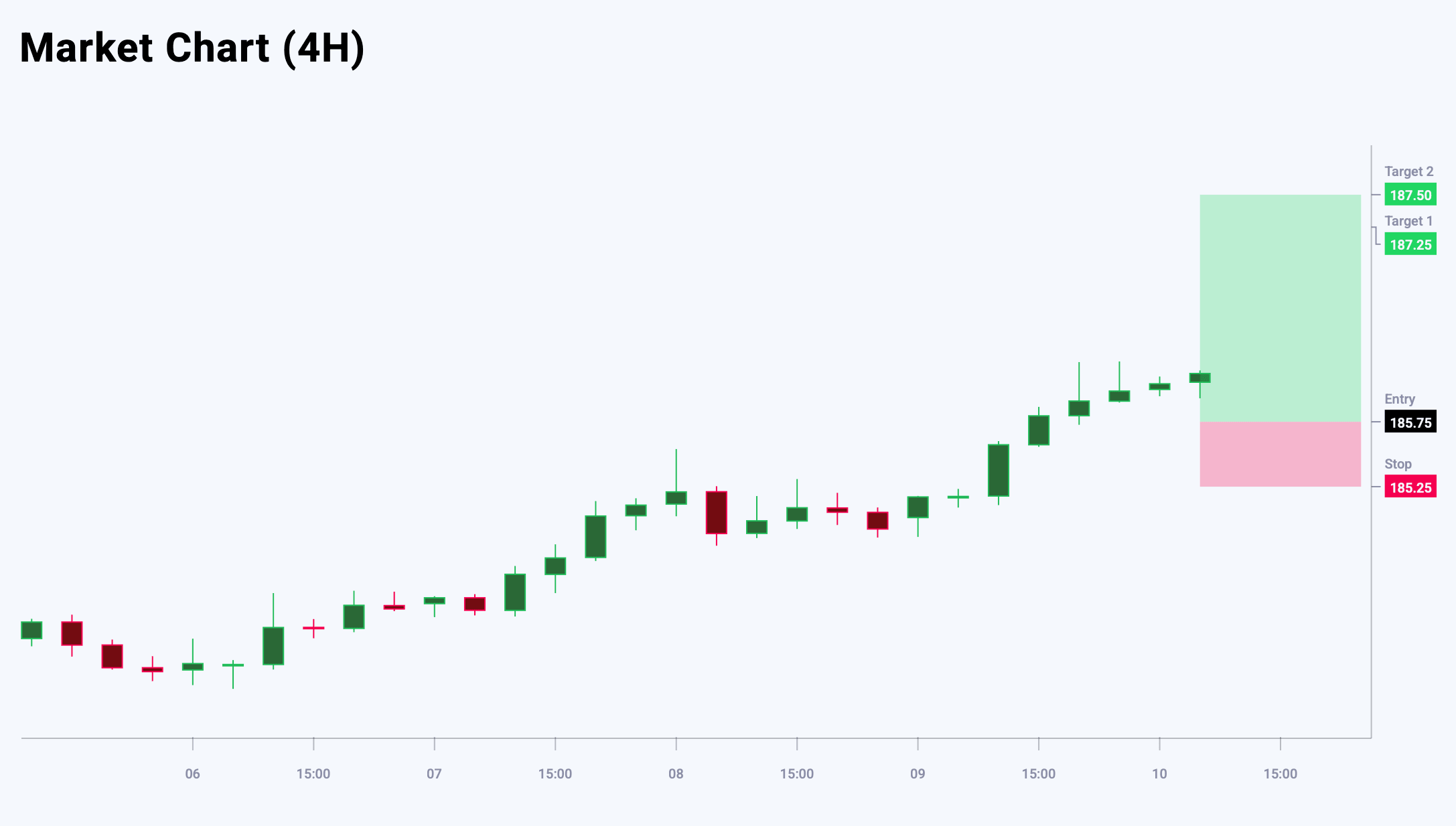 EURJPY өсім трендінің аяқталғанын көрсететін нақты белгілерді көрсетпейді, бұл орта мерзімді бычий бағытты қолдайды. Сонымен қатар, нарықта аюлы түзету үшін әлі де кеңістік бар және төмендеу негізгі трендті бұзбай-ақ жалғасуы мүмкін. Ағымдағы деңгейлерде сатып алу үшін тәуекел/табыс арақатынасы тартымсыз, бұл ұзын позициялар ашуға қызығушылықты төмендетеді. 186.50 деңгейінен жоғары бұзылу бычий импульстің күшеюін растап, 187.50 деңгейіне дейін әрі қарай өсімге жол ашады. Бүгінгі EURJPY сауда идеясы кейінге қалдырылған Buy Limit ордерін орналастыруды көздейді.