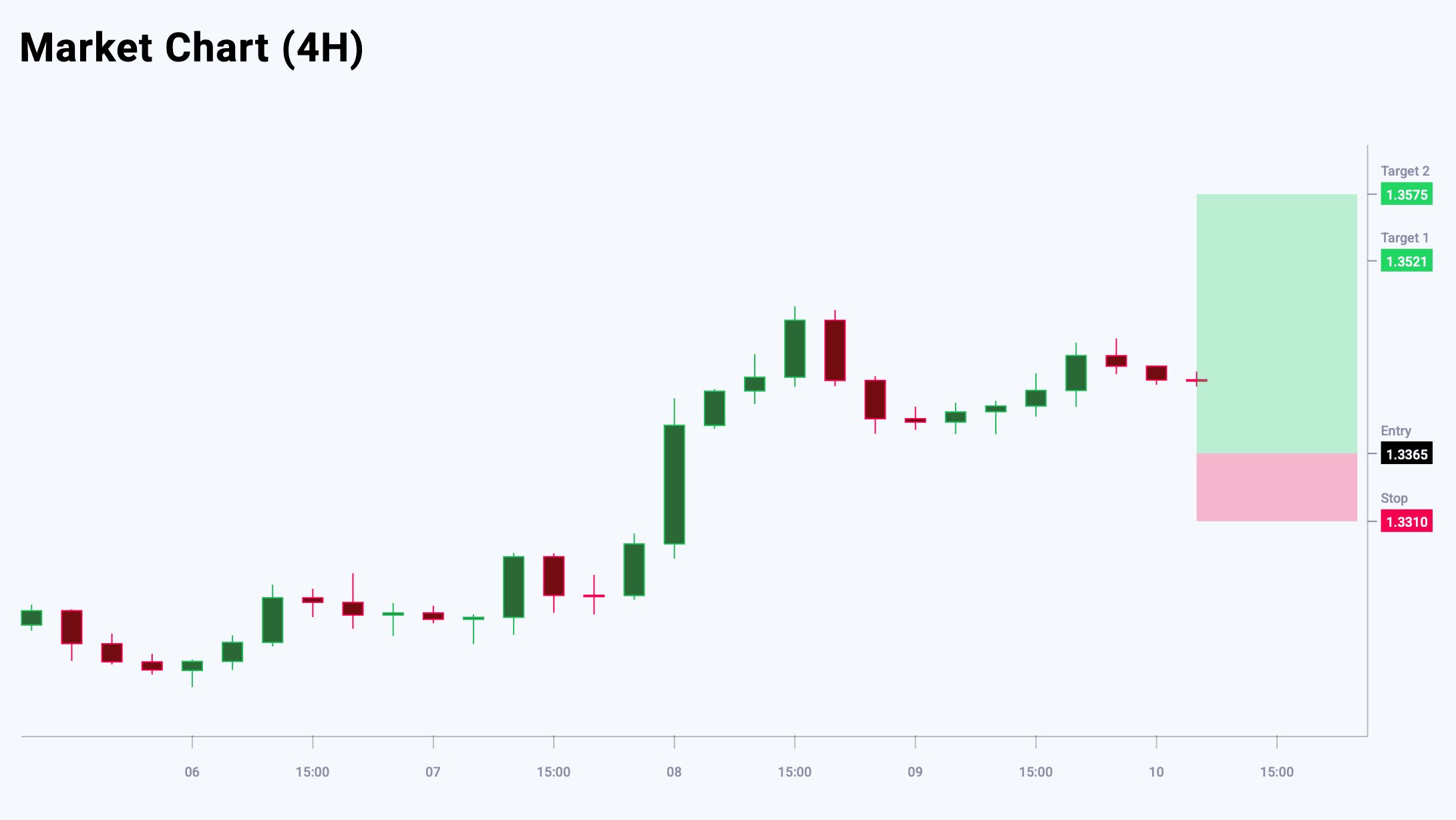 GBPUSD жергілікті шың қалыптастыруда, бұл ағымдағы өсім импульсінің әлсіреп жатқанын көрсетеді және аюлы түзету ықтималдығын арттырады. Қысқа мерзімде бағаның төмендеуі күтіледі, алайда сатушылар қысымы шектеулі болуы мүмкін. Ағымдағы деңгейлерден төмен орналасқан Ichimoku бұлтының қолдауы тереңірек құлдырауды шектеуі ықтимал. Негізгі қолдау аймағы 1.3365 деңгейінде орналасқан, мұнда сатып алушылар белсенділігі артуы мүмкін. Бүгінгі GBPUSD сауда идеясы кейінге қалдырылған Buy Limit ордерін орналастыруды көздейді.