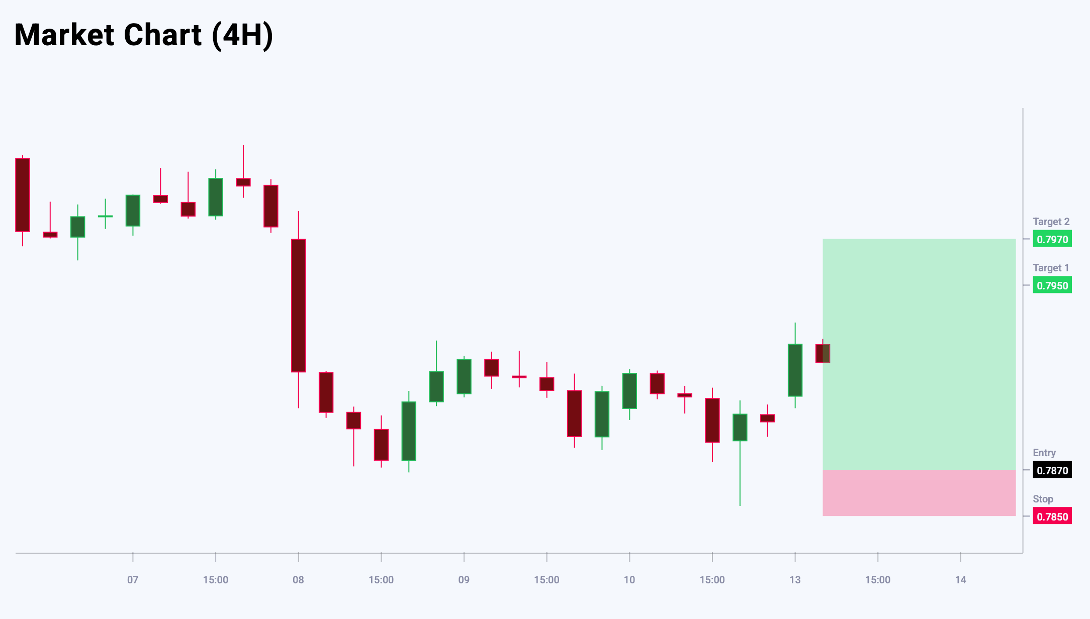 USDCHF тұрақсыз баға қозғалысын көрсетуде, бұл негізгі деңгейлер маңында сатып алушылар мен сатушылар арасындағы күресті білдіреді. Сонымен қатар, төмендеу алдыңғы күннің минимумымен шектелуі мүмкін, бұл сатып алу қысымының сақталып отырғанын көрсетеді. Ағымдағы баға құрылымы жергілікті түбінің қалыптасуын меңзейді, ол әрі қарай өсім үшін база бола алады. Негізгі қолдау деңгейі 0.7870 аймағында орналасқан, мұнда сұраныс күшеюі ықтимал. Осы жағдайда негізгі стратегия — баға төмендеген кезде сатып алу, жақын арада біртіндеп қалпына келуді күтіп. Бүгінгі USDCHF сауда идеясы кейінге қалдырылған Buy Limit ордерін орналастыруды көздейді.
