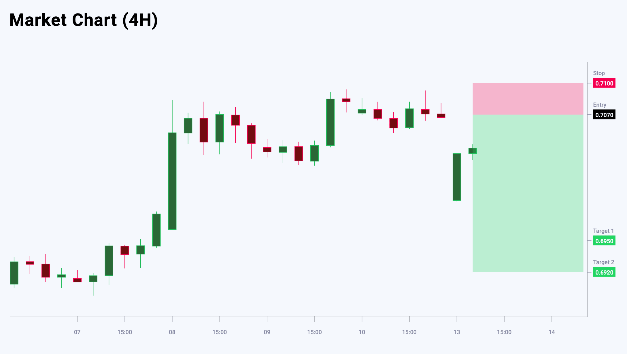 XAGUSD бойынша баға қозғалысын талдау база қалыптасып жатқанын көрсетеді, бұл сатушылар қысымының біртіндеп әлсіреуін білдіреді. Қысқа мерзімді тренд қалыпты түрде бычий күйде қалып отыр. Дегенмен, жақын арада бағаның уақытша төмендеуі мүмкін, бұл кеңірек өсімдік кері бұрылу аясындағы түзету ретінде қарастырылуы тиіс. Негізгі қолдау деңгейі 71.50 аймағында орналасқан, мұнда сатып алу қысымы күшеюі күтіледі. Осы контексте негізгі стратегия — түзетулер кезінде сатып алу. Бүгінгі XAGUSD сауда идеясы кейінге қалдырылған Buy Limit ордерін орналастыруды көздейді.