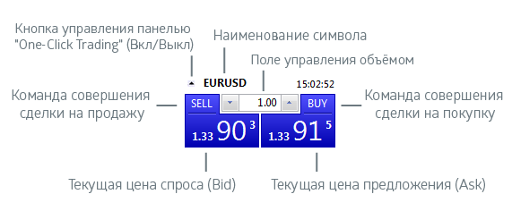 Будьте внимательны: после нажатия кнопки "Sell" или "Buy" на сервер немедленно отправляется запрос на продажу или покупку выбранного символа в выбранном объёме без каких-либо дополнительных подтверждений.